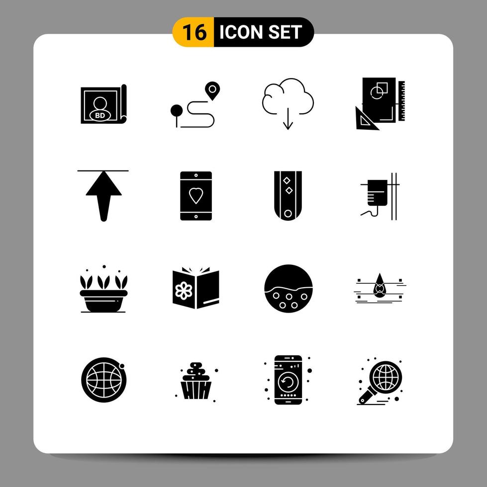 Pack of 16 Modern Solid Glyphs Signs and Symbols for Web Print Media such as home sketching cloud sketch layout Editable Vector Design Elements