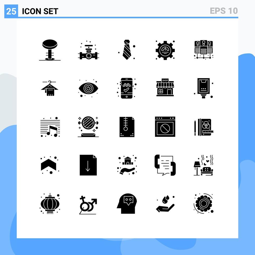 Set of 25 Commercial Solid Glyphs pack for server hosting productivity attire performance efficiency Editable Vector Design Elements