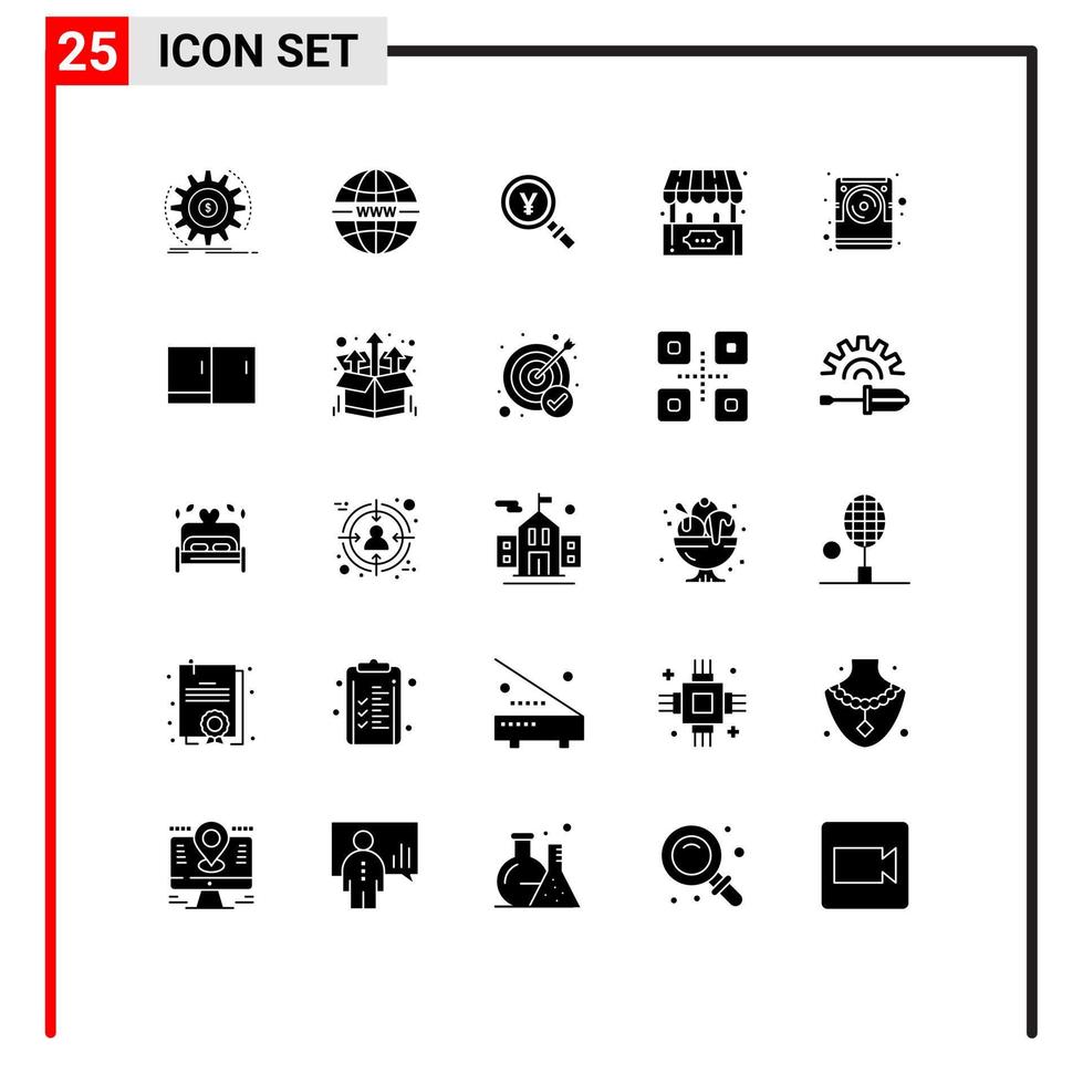 User Interface Pack of 25 Basic Solid Glyphs of play fun web ticket office search Editable Vector Design Elements Free Vector