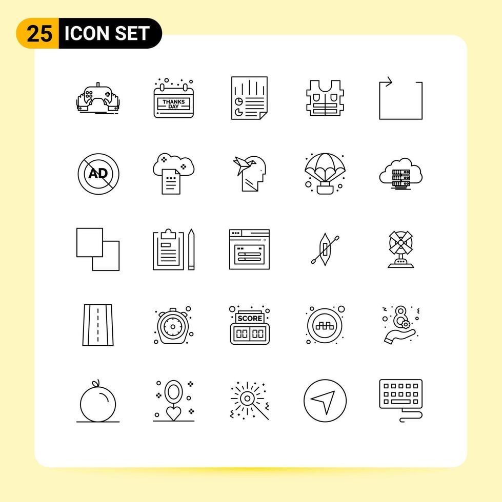 25 Universal Lines Set for Web and Mobile Applications arrow life thanks day jacket report Editable Vector Design Elements