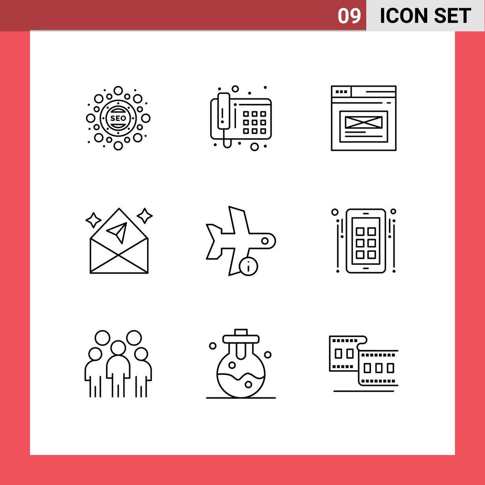 Pictogram Set of 9 Simple Outlines of info open page mail arrow Editable Vector Design Elements