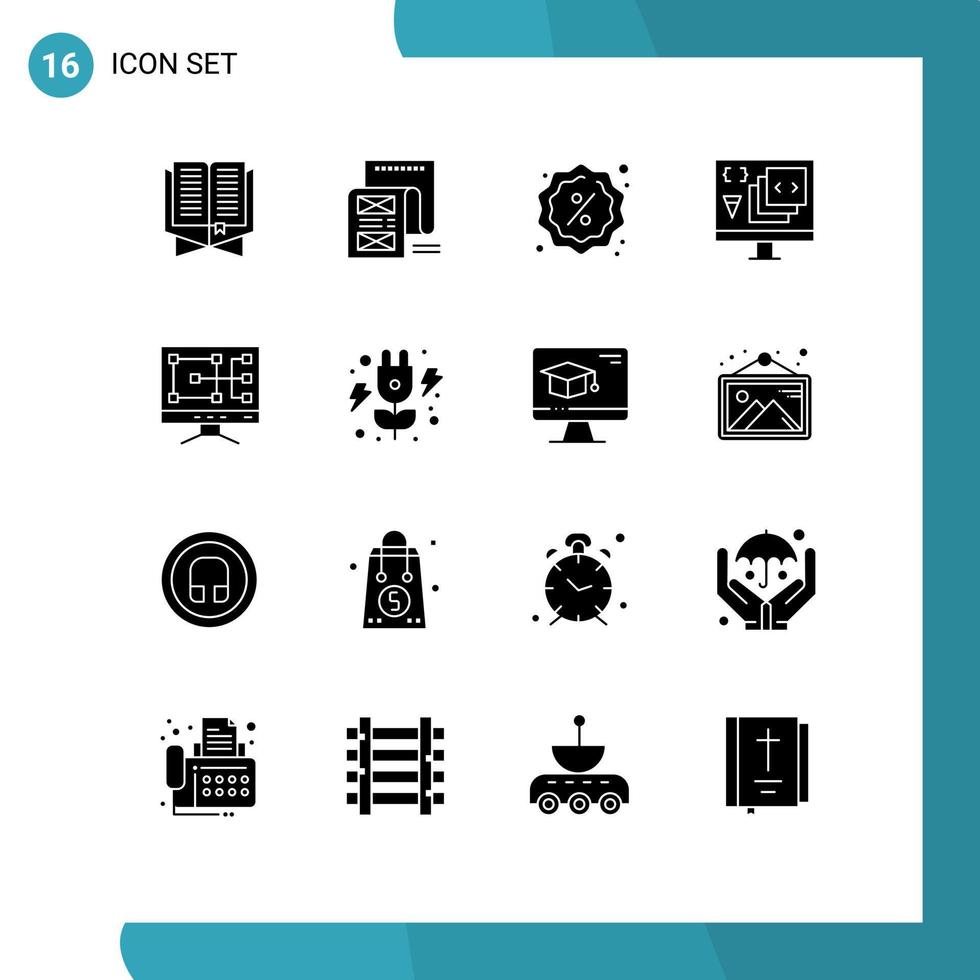 Solid Glyph Pack of 16 Universal Symbols of development coding message app sale Editable Vector Design Elements