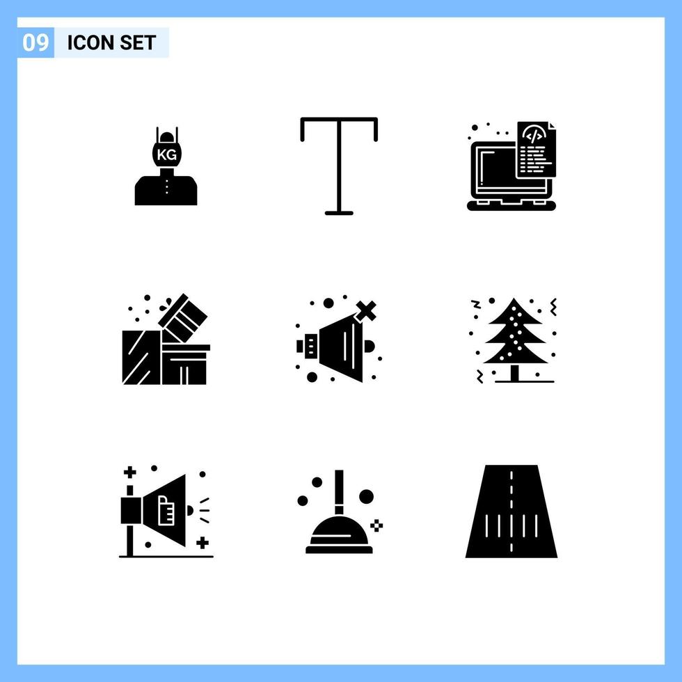 Set of 9 Vector Solid Glyphs on Grid for eid package device box coding Editable Vector Design Elements