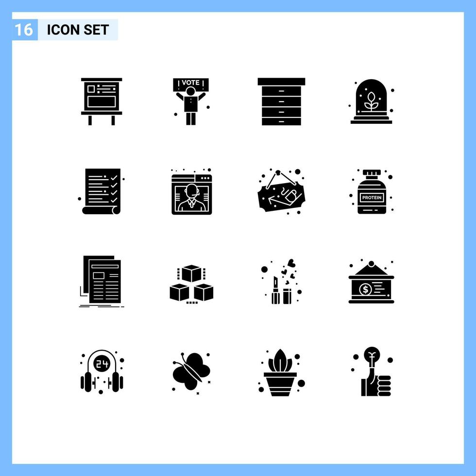Set of 16 Commercial Solid Glyphs pack for survey audit vote plant experimental growth Editable Vector Design Elements Free Vector