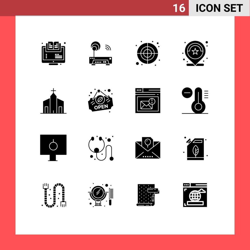 Mobile Interface Solid Glyph Set of 16 Pictograms of review number router location shape Editable Vector Design Elements Free Vector