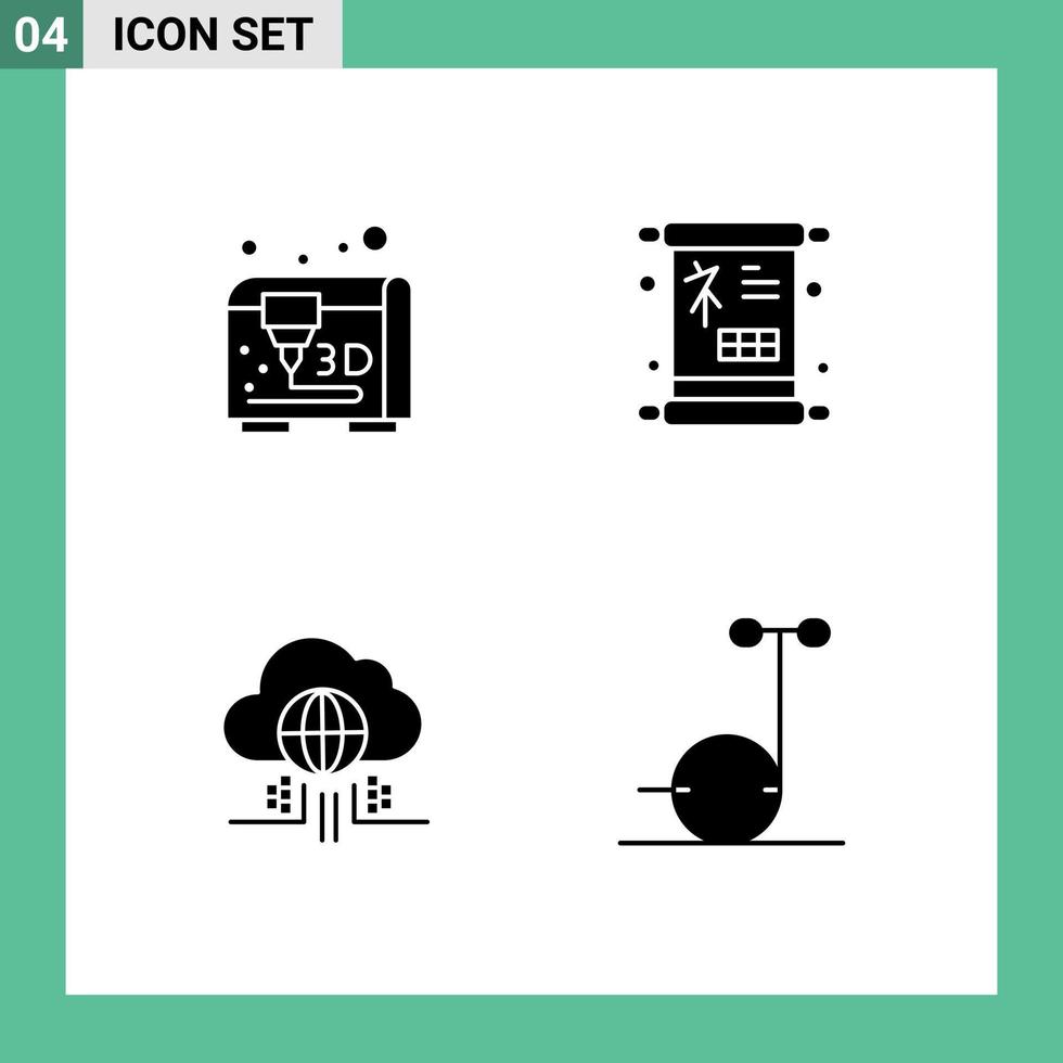 Set of 4 Modern UI Icons Symbols Signs for modeling technology luck internet scooter Editable Vector Design Elements