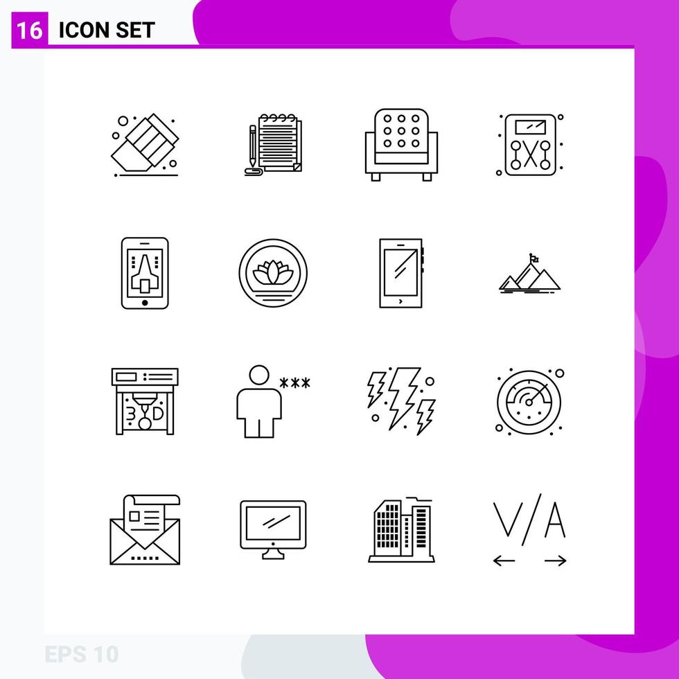 16 User Interface Outline Pack of modern Signs and Symbols of smartphone playing interior game scale Editable Vector Design Elements