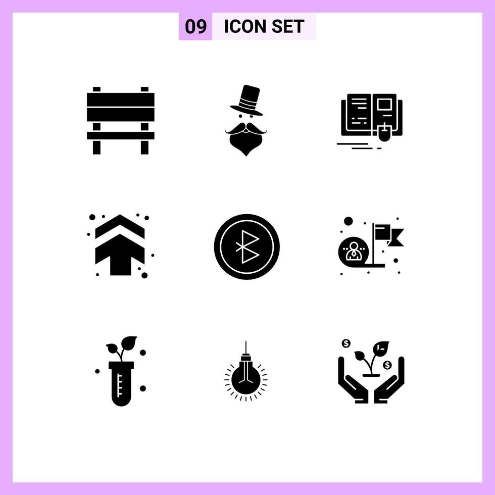 Set of 9 Vector Solid Glyphs on Grid for bluetooth up hat arrows mouse Editable Vector Design Elements Free Vector
