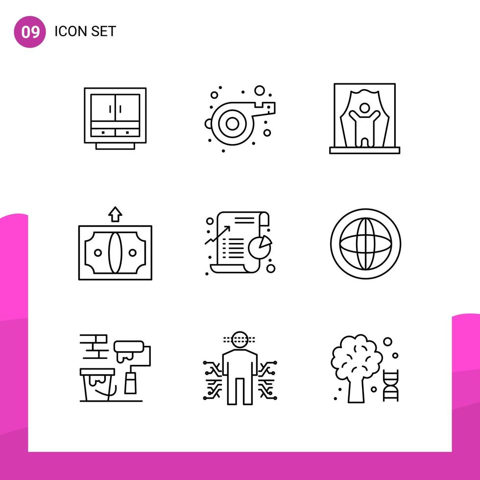 Outline Icon set Pack of 9 Line Icons isolated on White Background for responsive Website Design Print and Mobile Applications Creative Black Icon vector background
