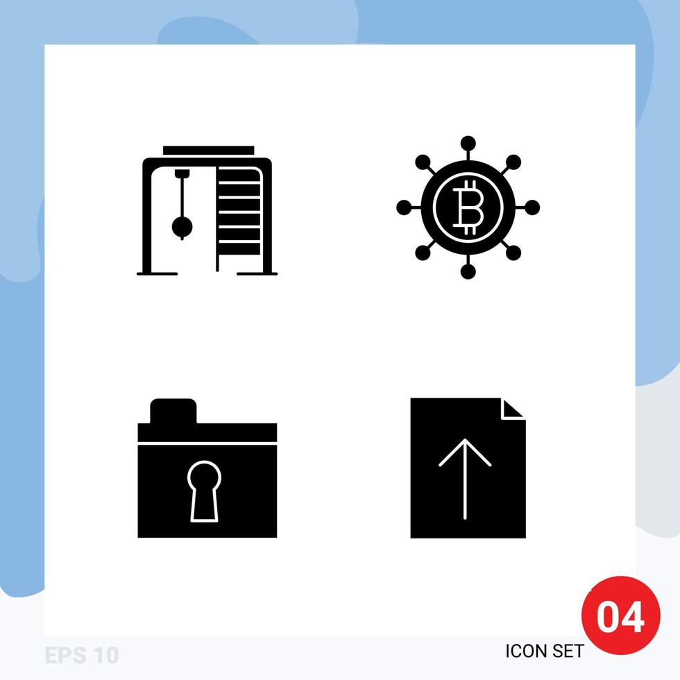 4 User Interface Solid Glyph Pack of modern Signs and Symbols of athletic document game folder upload Editable Vector Design Elements