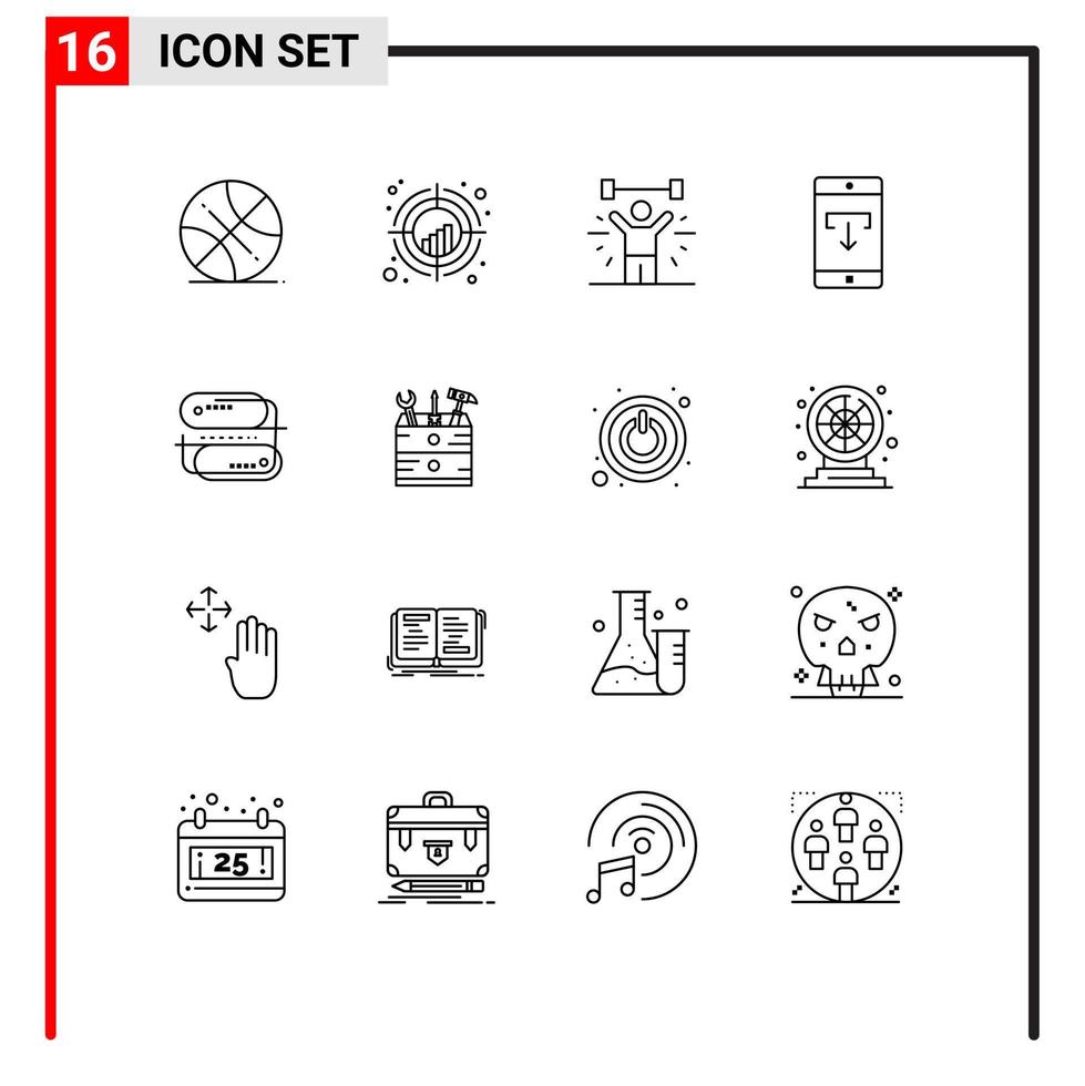 Pack of 16 Modern Outlines Signs and Symbols for Web Print Media such as mobile data trend application weight Editable Vector Design Elements Free Vector