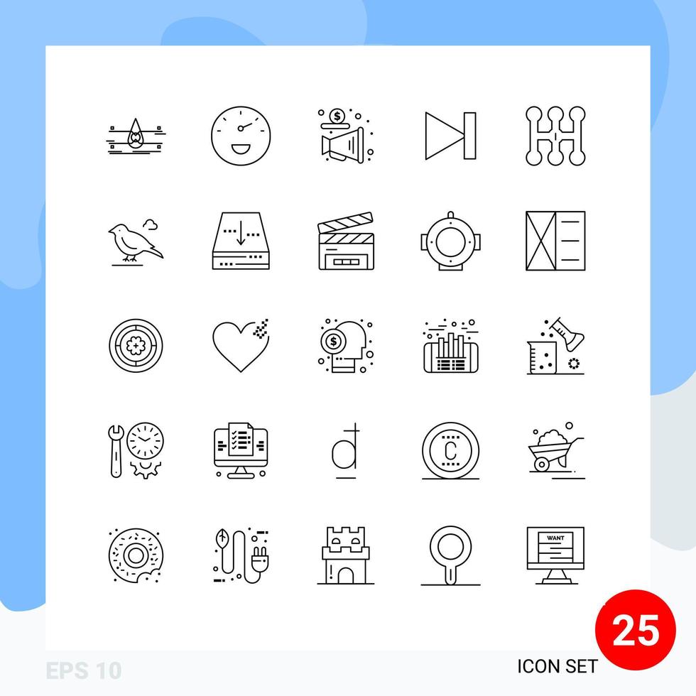 25 Universal Lines Set for Web and Mobile Applications manual next advertising last end Editable Vector Design Elements Free Vector