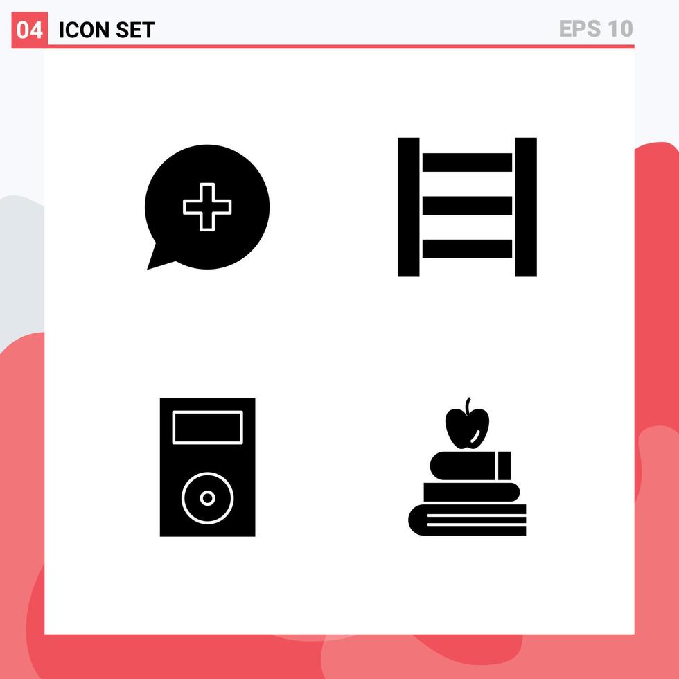 4 User Interface Solid Glyph Pack of modern Signs and Symbols of add technology plus electronics books Editable Vector Design Elements