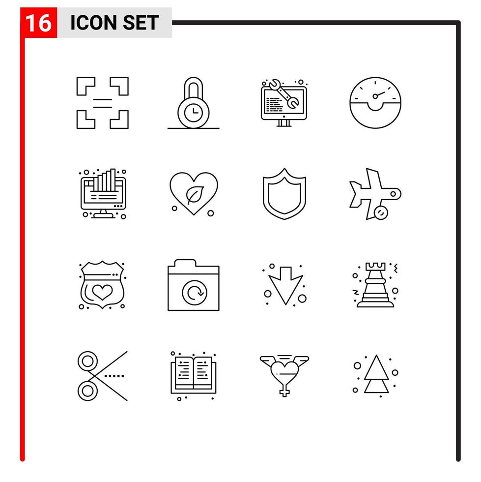 Editable Vector Line Pack of 16 Simple Outlines of pie computer web chart speed Editable Vector Design Elements