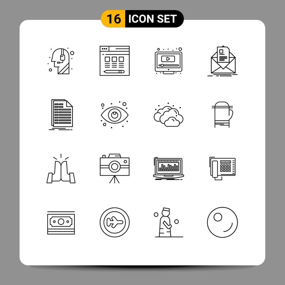 16 User Interface Outline Pack of modern Signs and Symbols of excel briefing play email contract Editable Vector Design Elements Free Vector