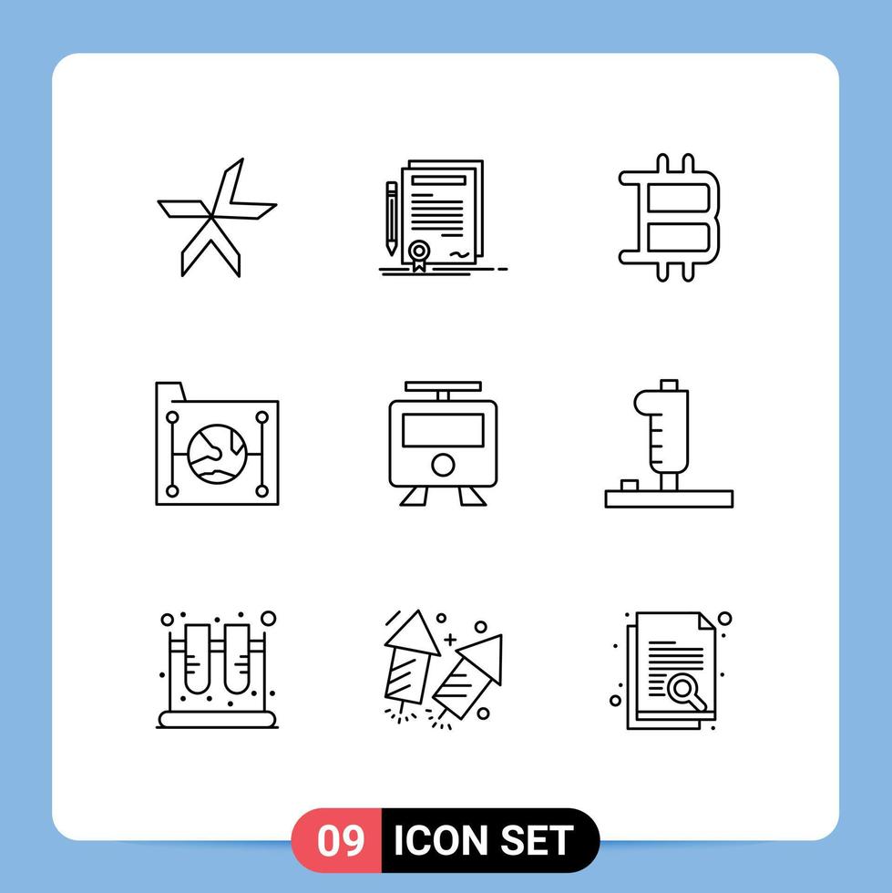 Mobile Interface Outline Set of 9 Pictograms of maps file document document cloud Editable Vector Design Elements