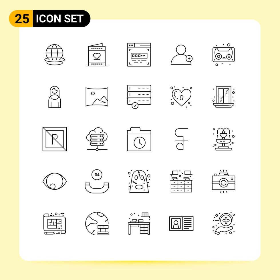 Editable Vector Line Pack of 25 Simple Lines of cassette tape audio tape invitation user follow Editable Vector Design Elements