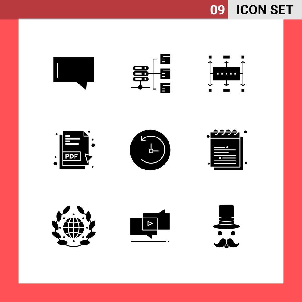 Group of 9 Modern Solid Glyphs Set for time machine backup workflow planning pdf file pdf Editable Vector Design Elements Free Vector