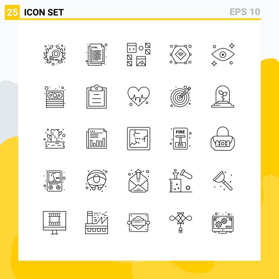 Pictogram Set of 25 Simple Lines of wifi record design iot programming Editable Vector Design Elements Free Vector