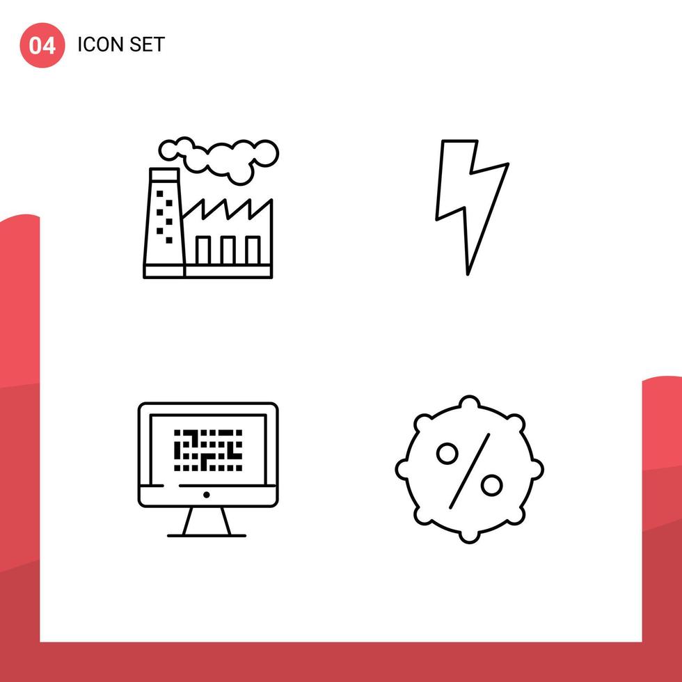 Mobile Interface Line Set of 4 Pictograms of factory ddos smoke ui information Editable Vector Design Elements Free Vector