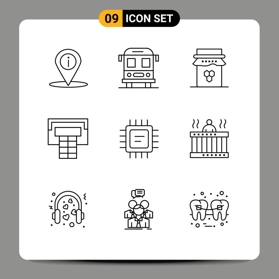 Mobile Interface Outline Set of 9 Pictograms of hot microchip honey cpu basketball Editable Vector Design Elements
