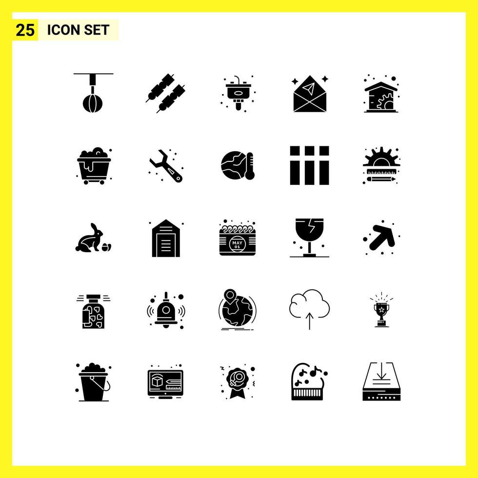 Editable Vector Line Pack of 25 Simple Solid Glyphs of home open disposal mail arrow Editable Vector Design Elements
