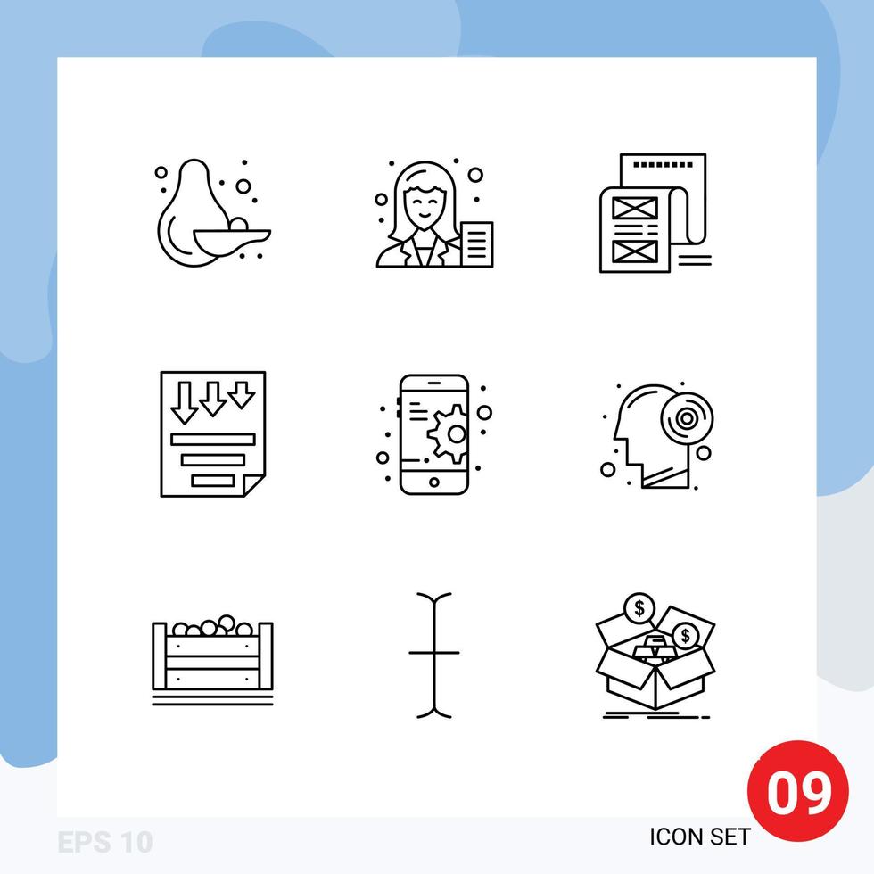 Set of 9 Vector Outlines on Grid for report page document low attachment Editable Vector Design Elements