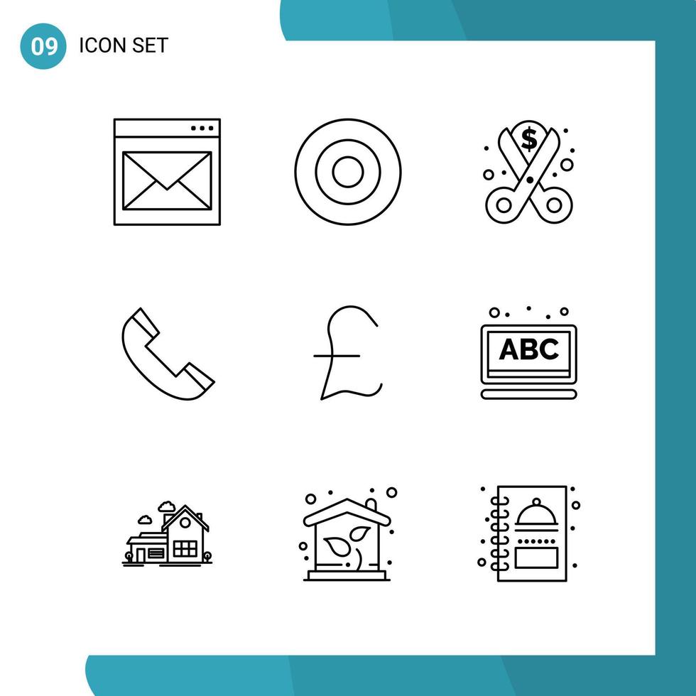 Vector Pack of 9 Outline Symbols Line Style Icon Set on White Background for Web and Mobile