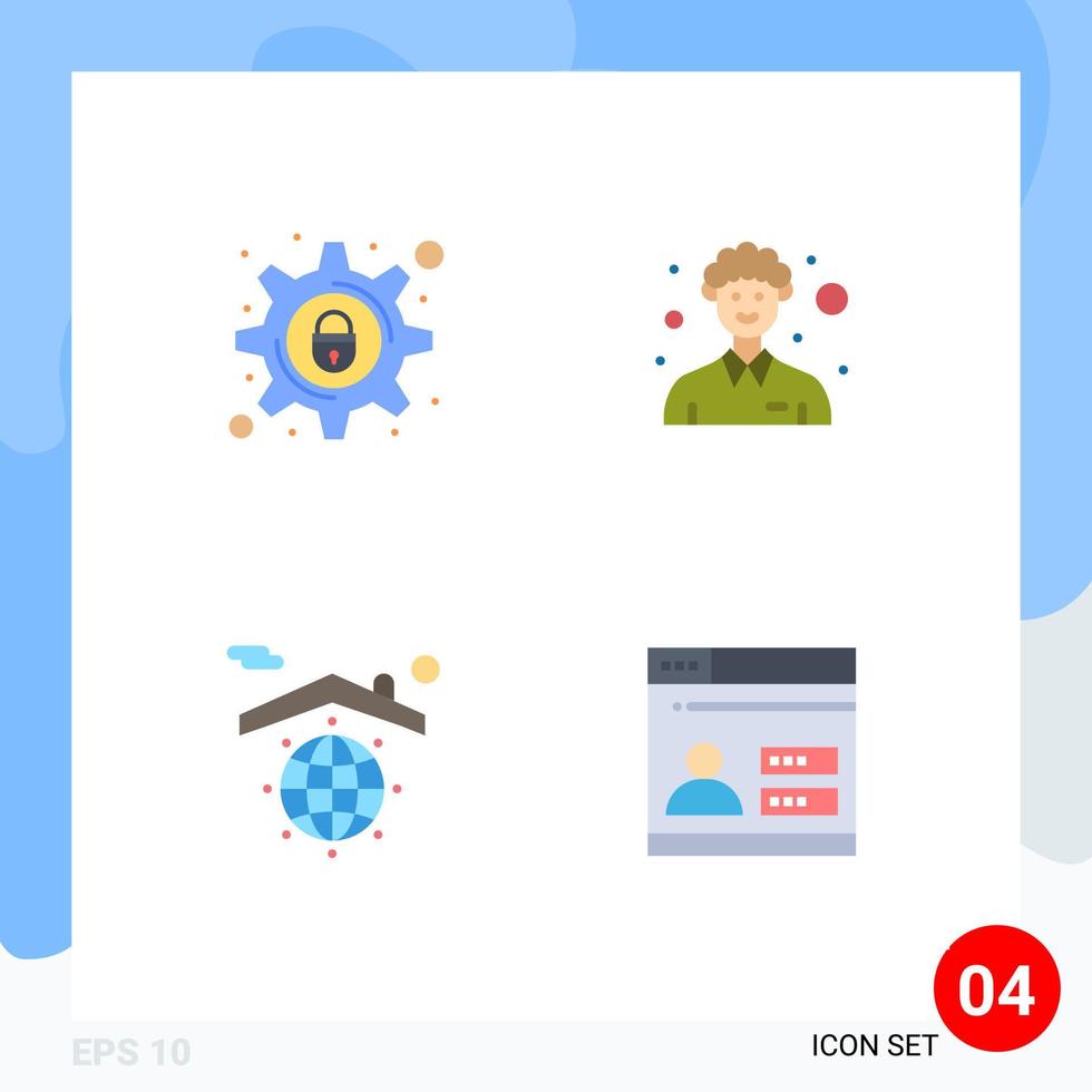 Group of 4 Modern Flat Icons Set for cyber crime globe setting man safe Editable Vector Design Elements