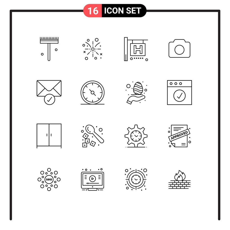 Outline Pack of 16 Universal Symbols of verification mail hotel sign ui image Editable Vector Design Elements