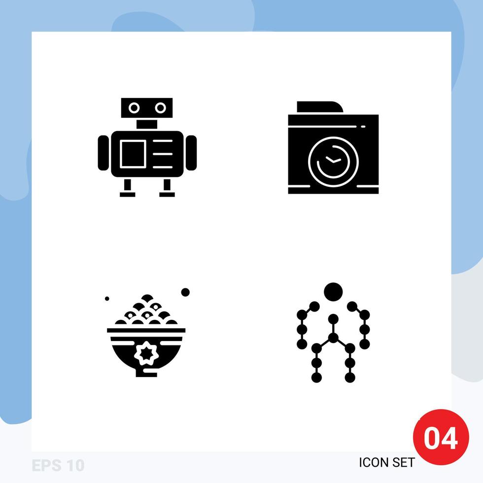 4 Solid Glyph concept for Websites Mobile and Apps robot lunch camera dates action Editable Vector Design Elements