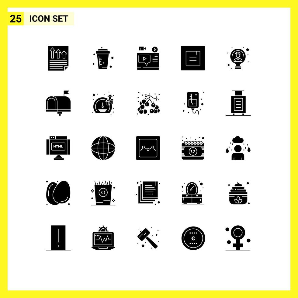 25 User Interface Solid Glyph Pack of modern Signs and Symbols of window layout juice tutorial blog Editable Vector Design Elements