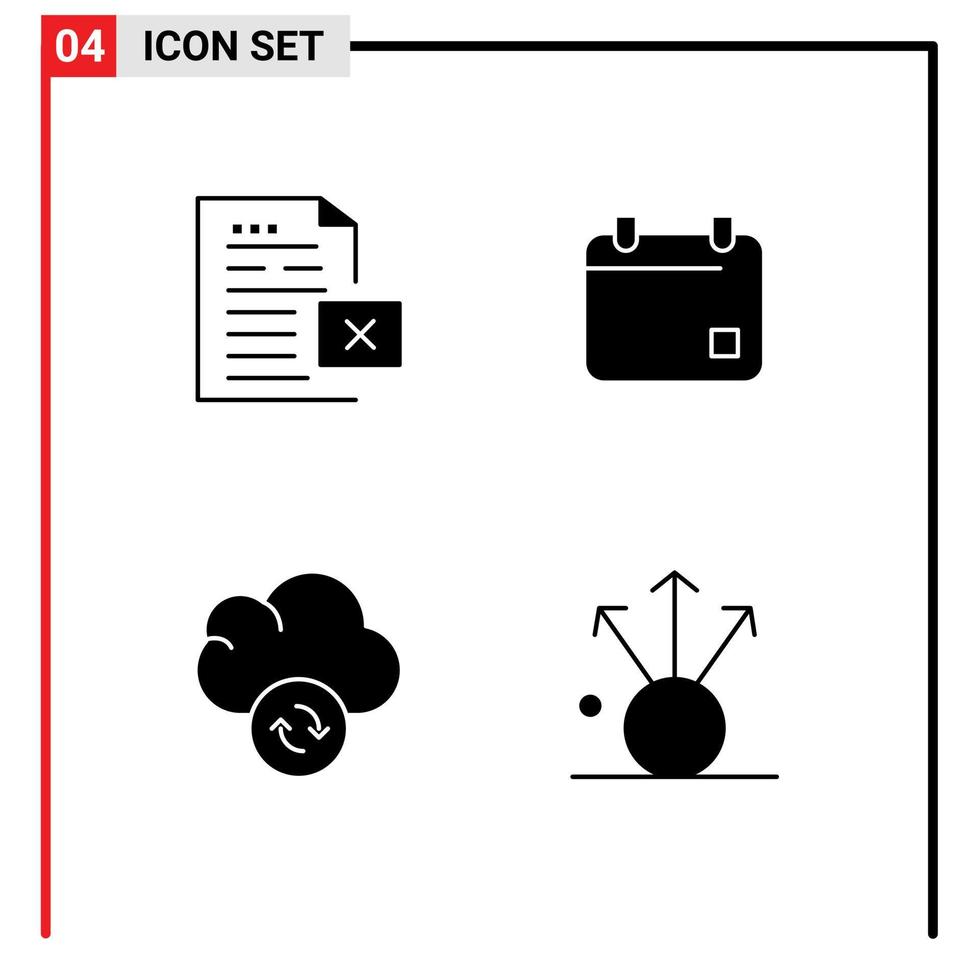 Modern Set of 4 Solid Glyphs and symbols such as data cloud file film sync Editable Vector Design Elements