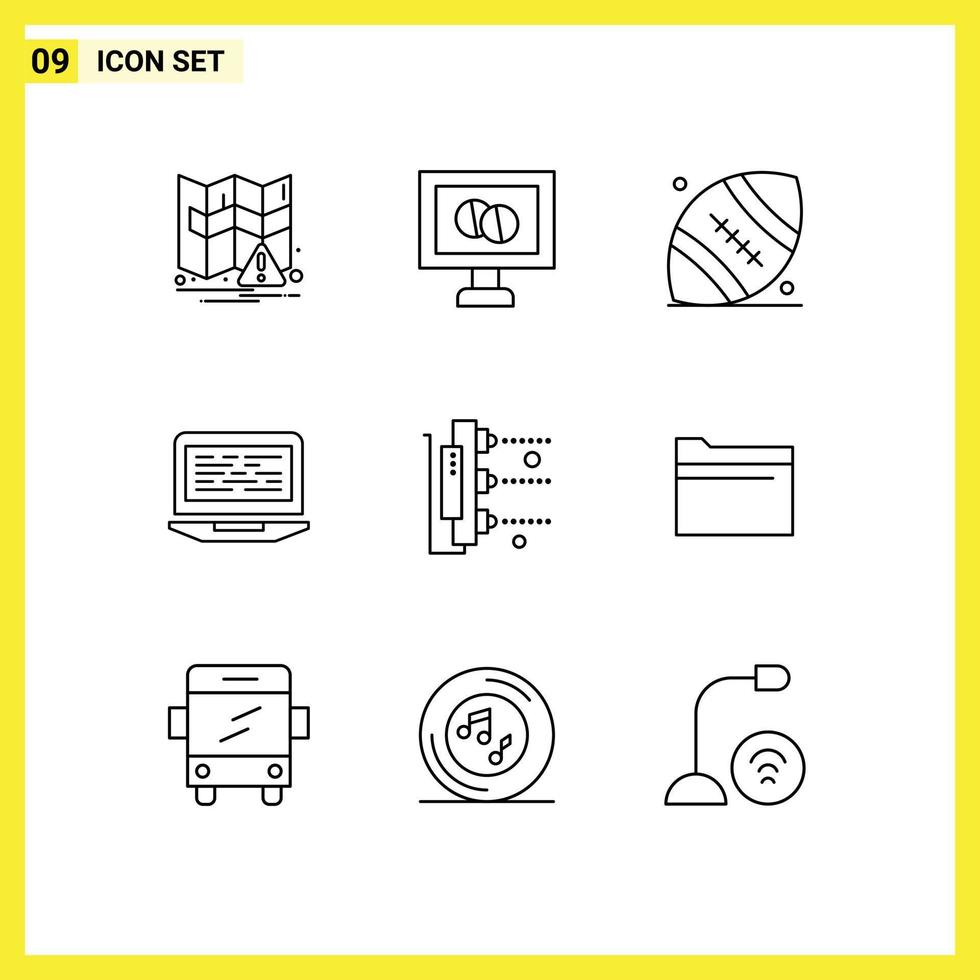 Modern Set of 9 Outlines and symbols such as machine factory rugby computer code Editable Vector Design Elements Free Vector