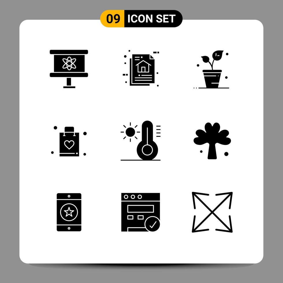 Modern Set of 9 Solid Glyphs Pictograph of climate shopping program algorithm shop nature Editable Vector Design Elements