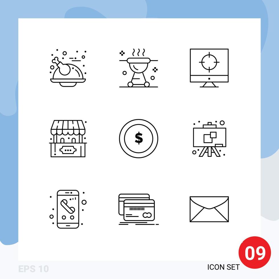 9 Outline concept for Websites Mobile and Apps business game meat fun targeting Editable Vector Design Elements Free Vector