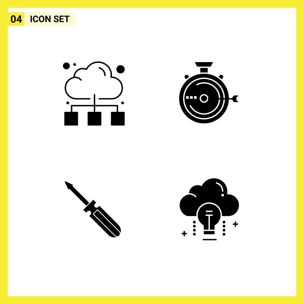 Group of 4 Modern Solid Glyphs Set for cloud screw internet optimization tool Editable Vector Design Elements