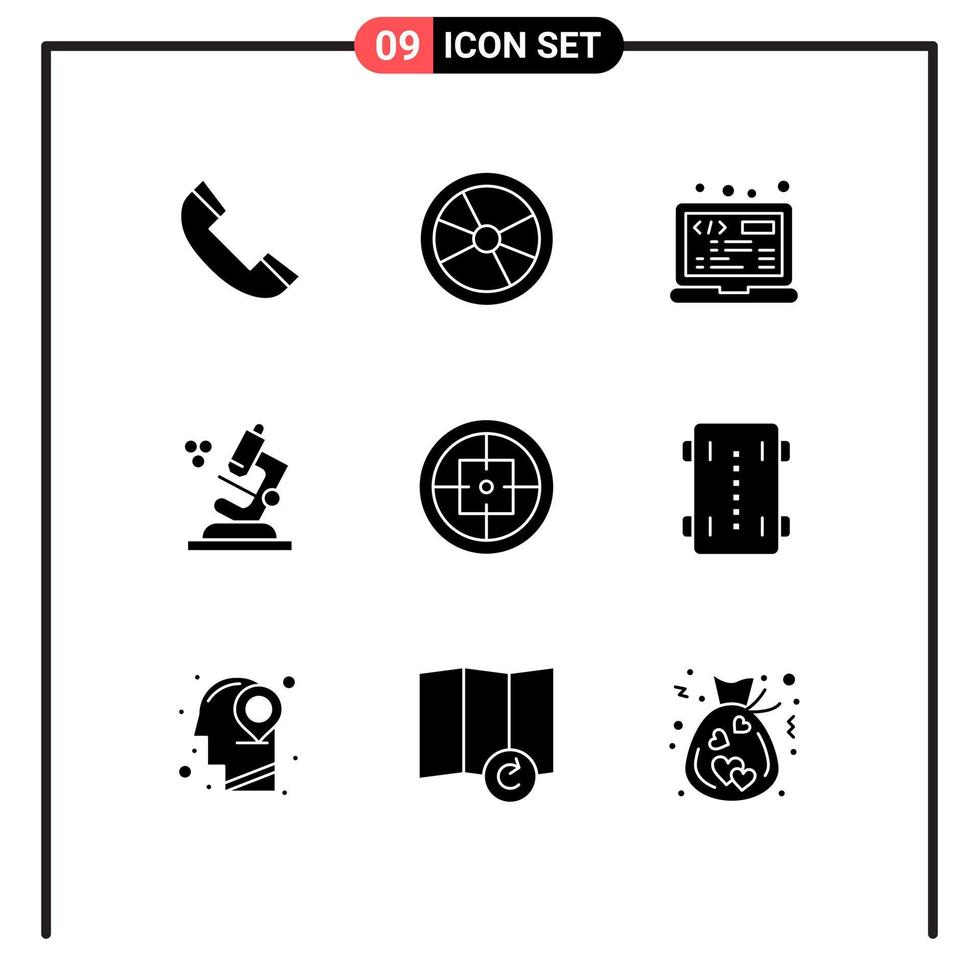 9 Solid Glyph concept for Websites Mobile and Apps badge science laboratory microscope html Editable Vector Design Elements Free Vector