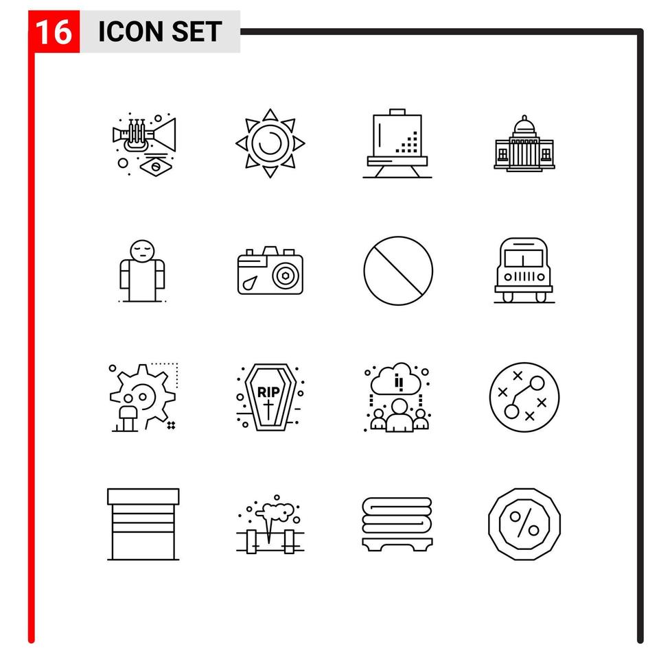 16 Universal Outlines Set for Web and Mobile Applications building house coding white whtiehouse Editable Vector Design Elements Free Vector