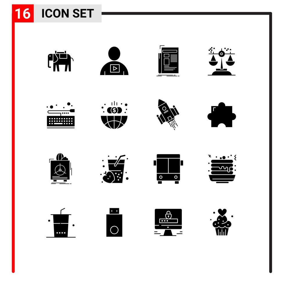 Set of 16 Modern UI Icons Symbols Signs for judgment conclusion video choice newsletter Editable Vector Design Elements