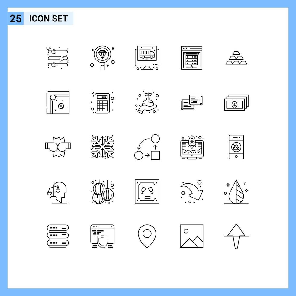 25 Thematic Vector Lines and Editable Symbols of gold data server programming data center economy Editable Vector Design Elements Free Vector