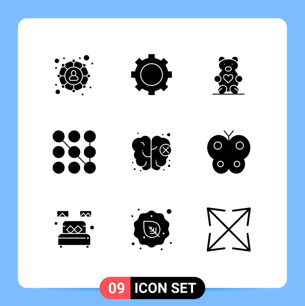 User Interface Pack of 9 Basic Solid Glyphs of animal knowledge love brain pattern Editable Vector Design Elements