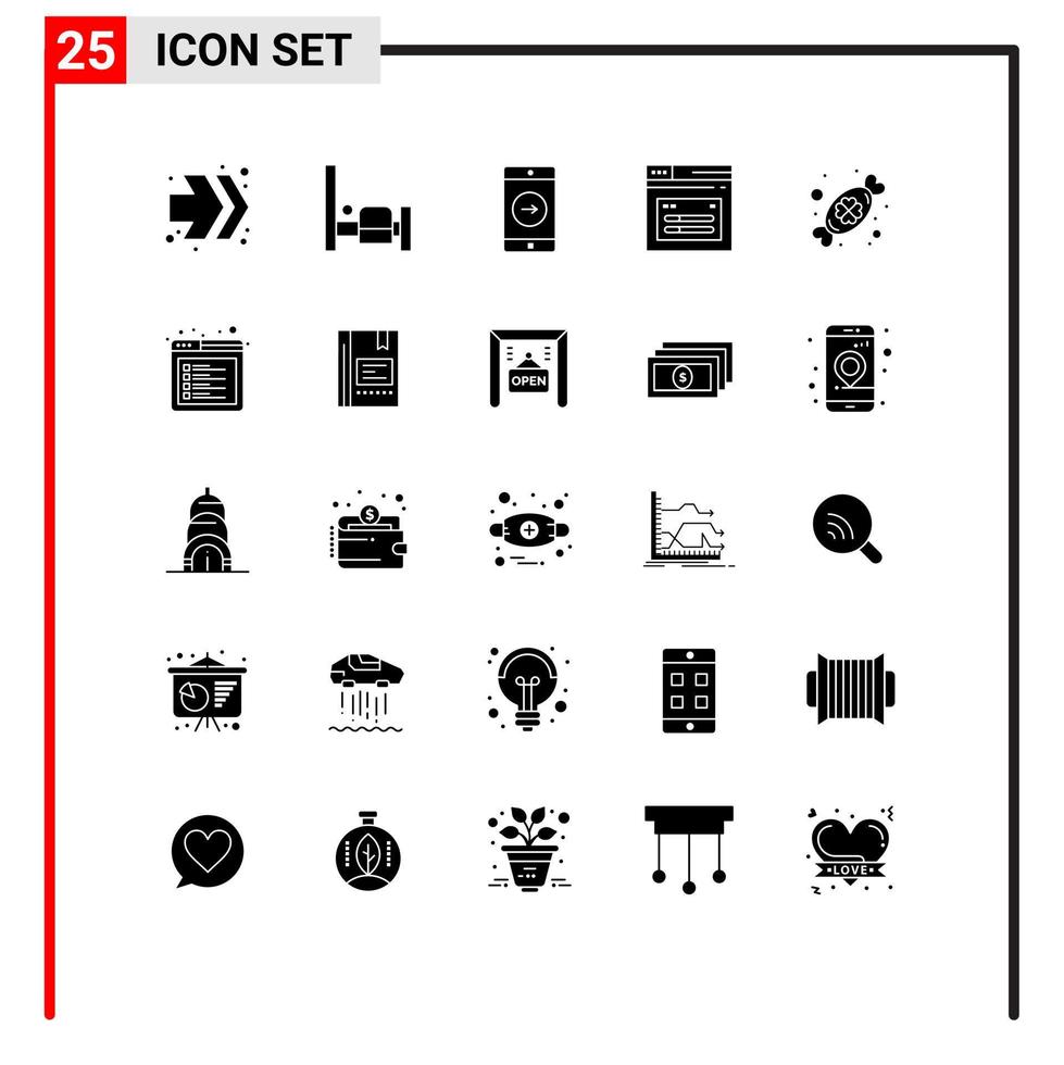 25 Universal Solid Glyphs Set for Web and Mobile Applications festival celebrate mobile candy web Editable Vector Design Elements Free Vector