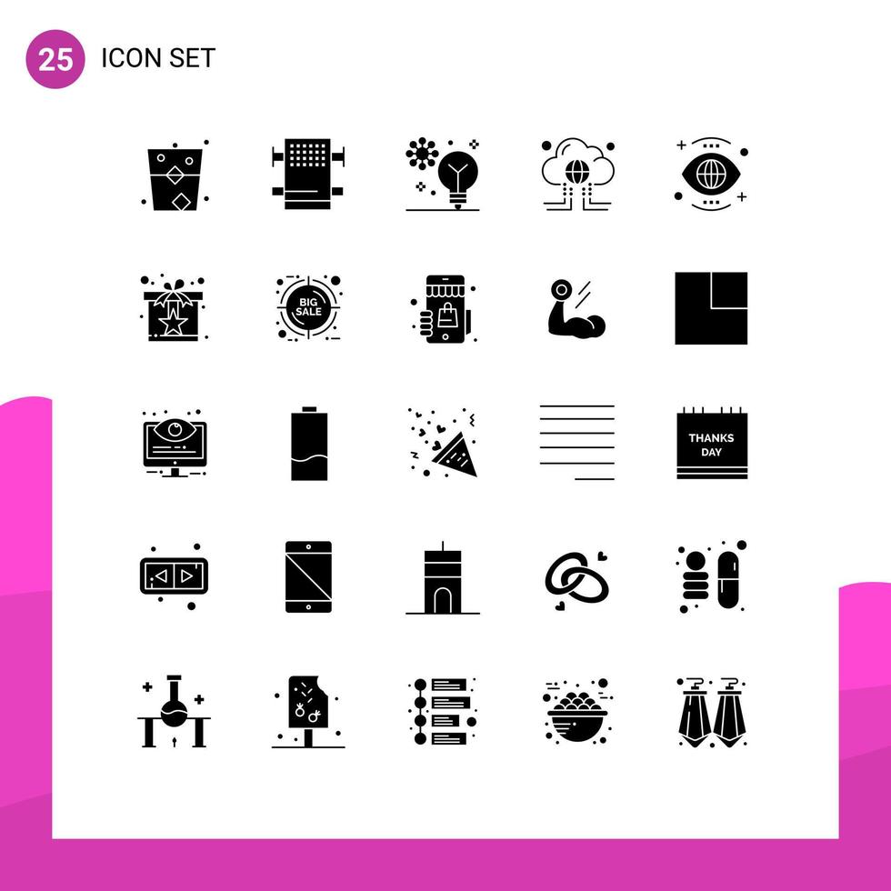 Set of 25 Vector Solid Glyphs on Grid for internet data artificial intelligence computing machine learning Editable Vector Design Elements