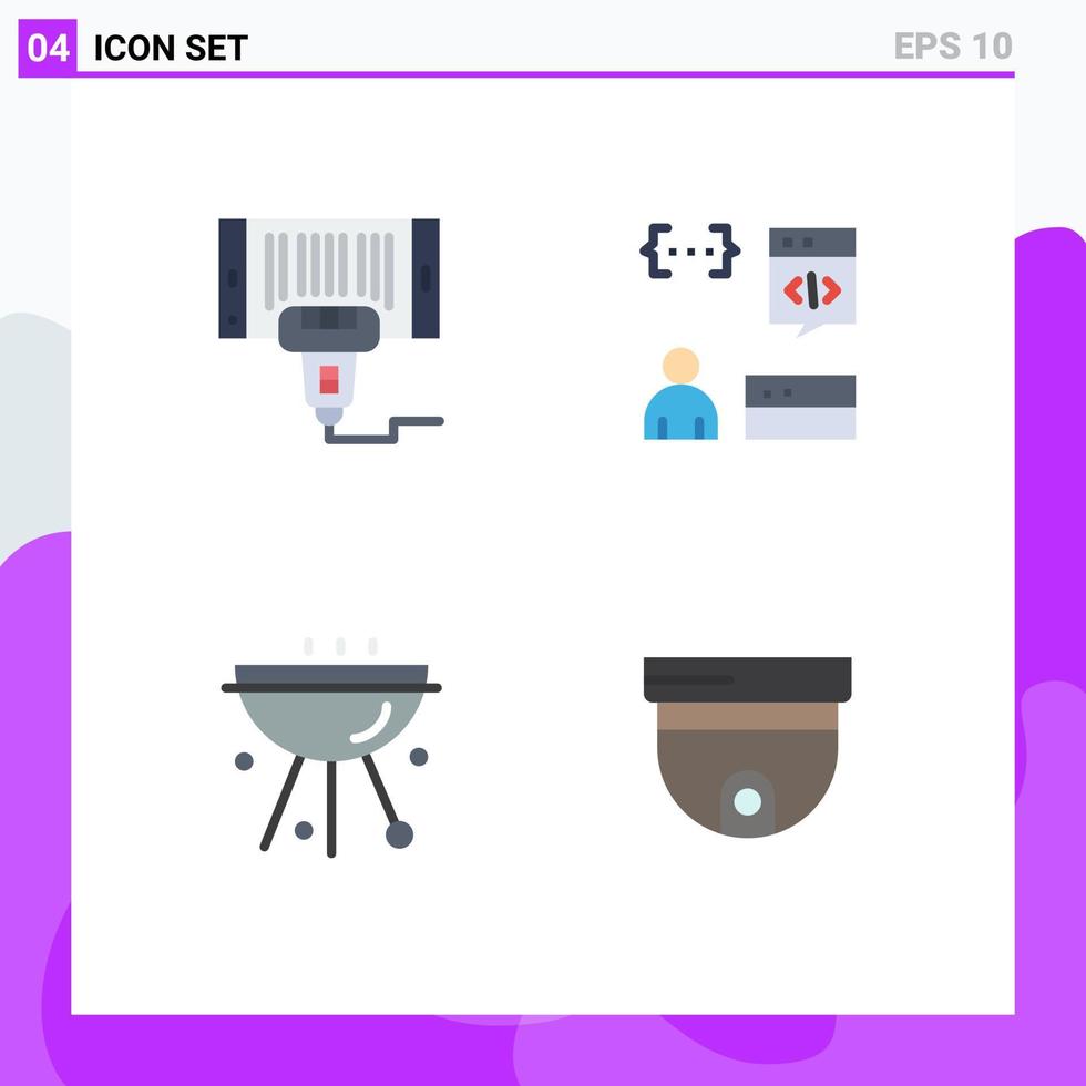 Set of 4 Modern UI Icons Symbols Signs for barcode programmer scan coding bbq Editable Vector Design Elements