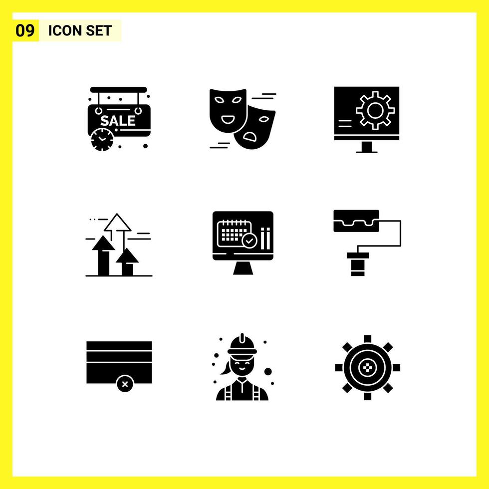 Mobile Interface Solid Glyph Set of 9 Pictograms of limits breaking bug break fix Editable Vector Design Elements