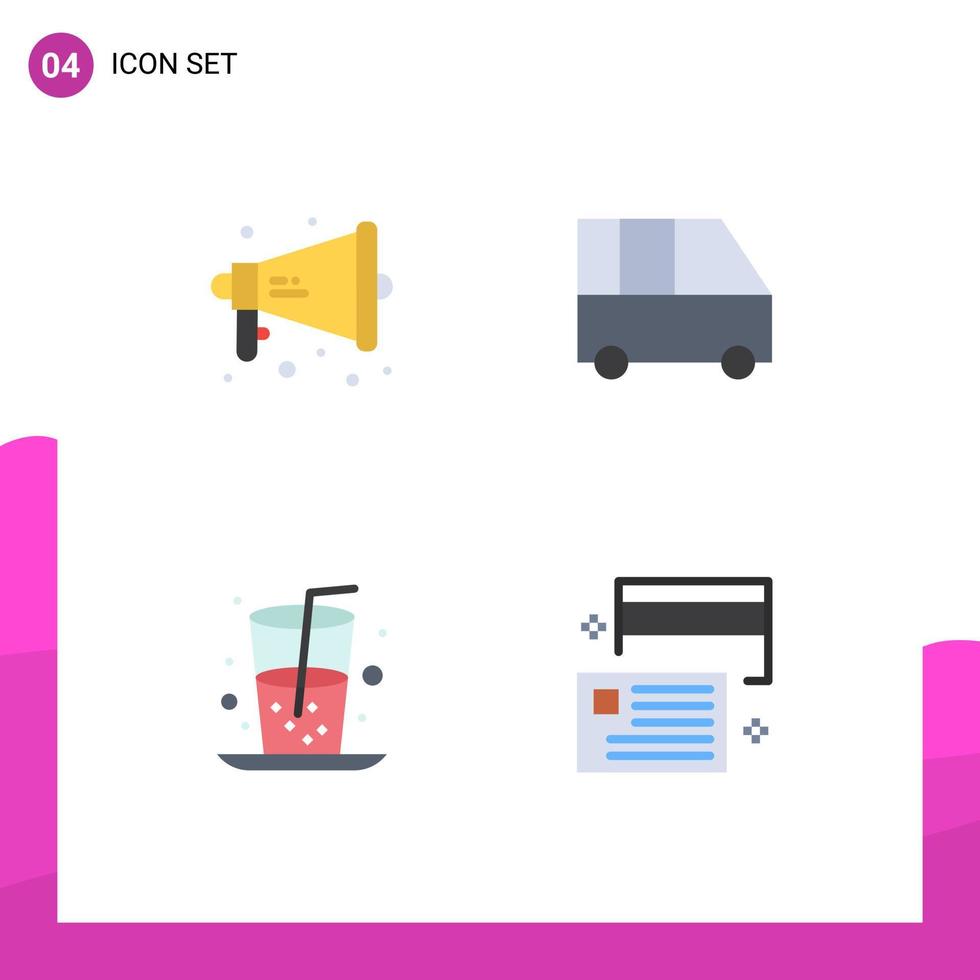 Mobile Interface Flat Icon Set of 4 Pictograms of loud drink warning minibus juice Editable Vector Design Elements