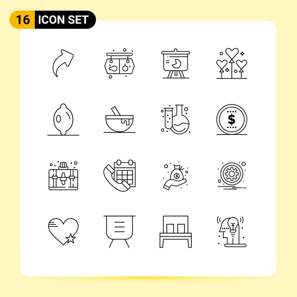 Group of 16 Modern Outlines Set for citrus party chart festival graph Editable Vector Design Elements
