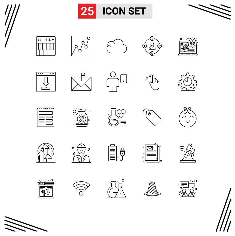 25 Universal Lines Set for Web and Mobile Applications digital advertising procrastination cloud media communication Editable Vector Design Elements Free Vector