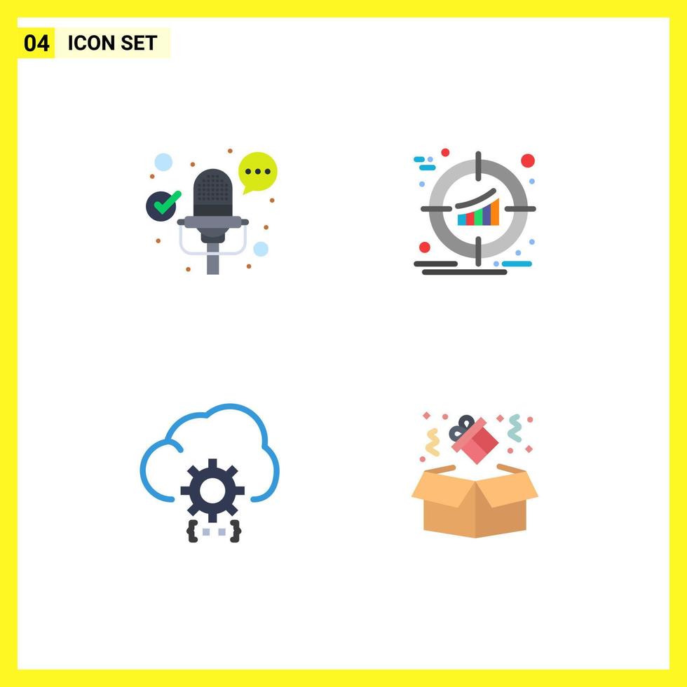Group of 4 Modern Flat Icons Set for microphone coding target product development Editable Vector Design Elements Free Vector